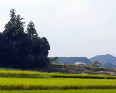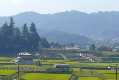 おそらく、この辺りかと思われます。 写真左の森が檜隈寺跡・右にかけての段々畑状の発掘調査地が今回の調査区ではないかと思われます。