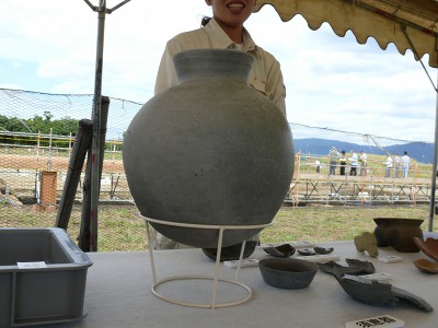 溝は宮の中心部の施設が作られる前に埋められていて、これまでに同じような規模の溝が4ヶ所、直線上に見つかっていることなどから、資材運搬用の運河であったと考えられたようです。その長さは今回を含めると500メートル以上あったと推定されています。