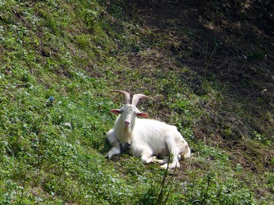たぶん同じ山羊です。繋がれてもおらず、のんびり寝そべっていました。