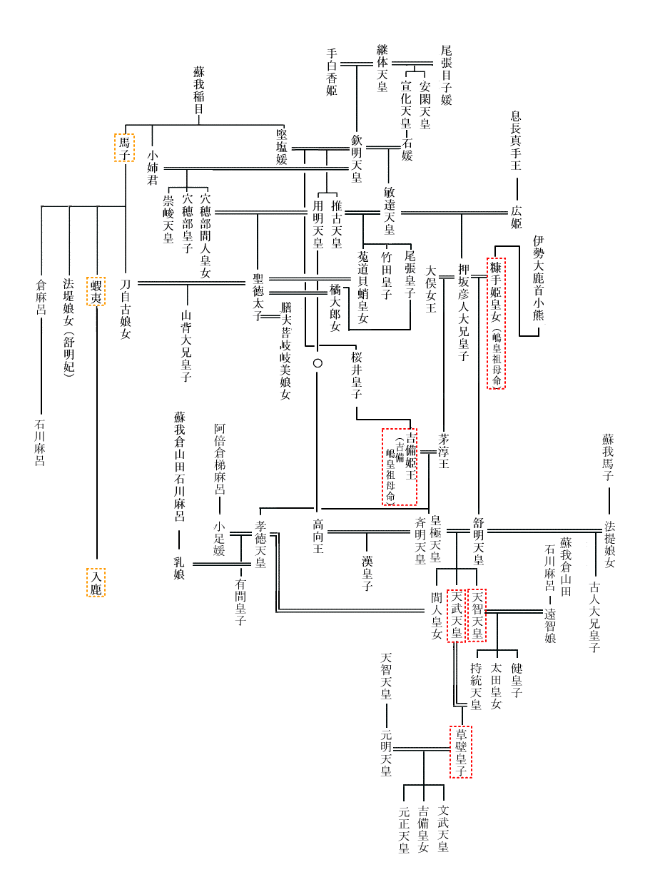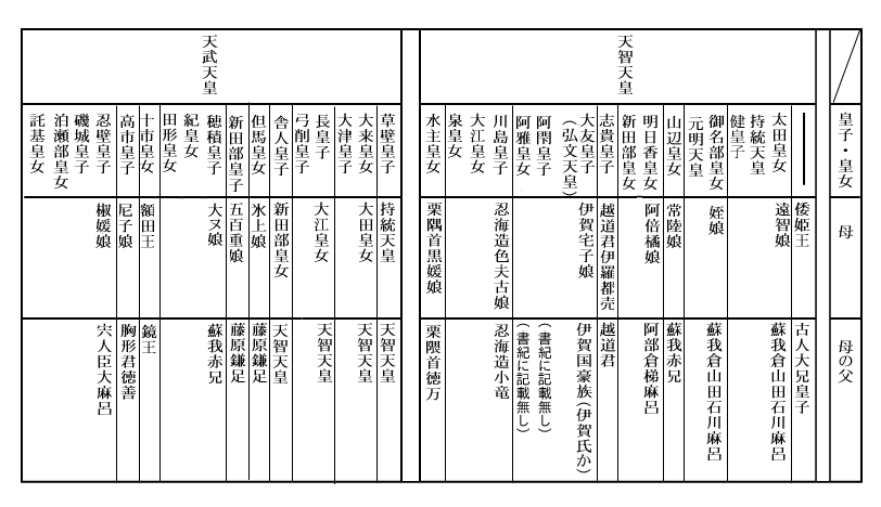8人居るらしい大兄皇子、なんや分からんなぁ? 中大兄皇子が最終の大兄皇子の称号?が付けられている。で、皇太子に就いてる。大兄皇子=皇太子ではなかったのだろうけど、書紀に書かれていることからだけでは、制度として大兄皇子→皇太子って図式でもない。中大兄皇子以前の皇太子は、怪しくない? 聖徳太子も含まれるんだけど。(^^ゞ 律令制度に則った立太子ってのを経るとしたら、もっと後なんだろうかな? 首皇子とか。まっ、例によって、遣唐使によって二段階に分かれて中途半端に伝わってるのかも知れんな。で、飛鳥時代末にドタバタと・・・。