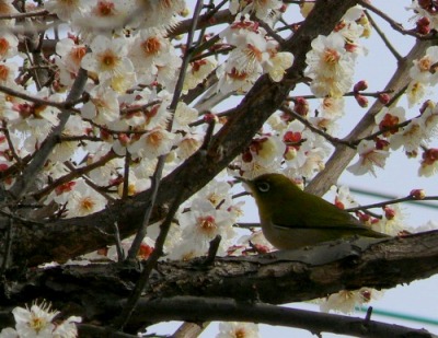 墓地があるので写真は撮りにくい。が、メジロが数羽来ていた。