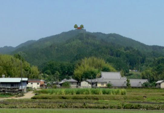 σ(^^)、飛鳥宮に立ってるんです。で、宮の東の山を見たら両槻宮が見えたのですよ♪