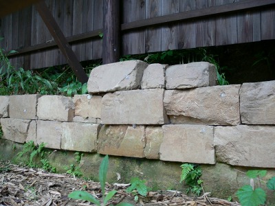 その砂岩をブロックに加工し、飛鳥石で出来た基礎石の上に積み重ねる。