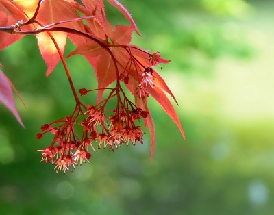 紅葉の花が目立った♪ 赤い紅葉が、新緑を背景にとても映えている♪