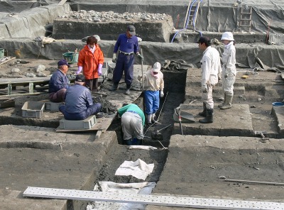 石神遺跡に向かった。 平日だから作業が見られると、胸がときめく♪ (笑)