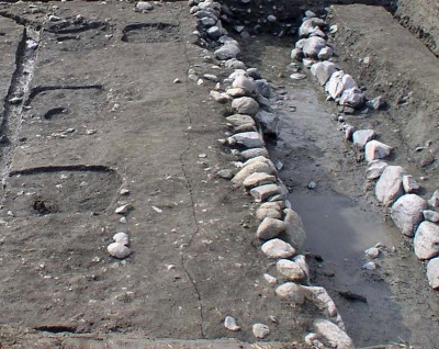 数年前に、この発掘地点から南の方向で排水路が検出されているはずです。