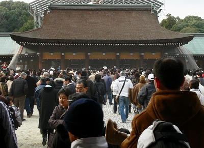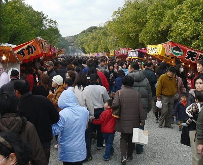 穏やかな元日とあって、橿原神宮参道はご覧の人出。