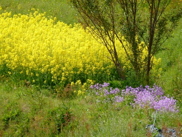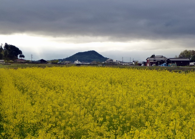 資料館から出たときは、まだ雨が降っていた。山田道を西に奧山まで来ると霧雨程度になって西の方向は明るくなってきた。ここの菜の花はまだ綺麗だった。