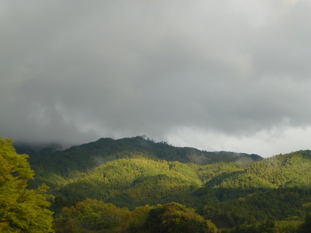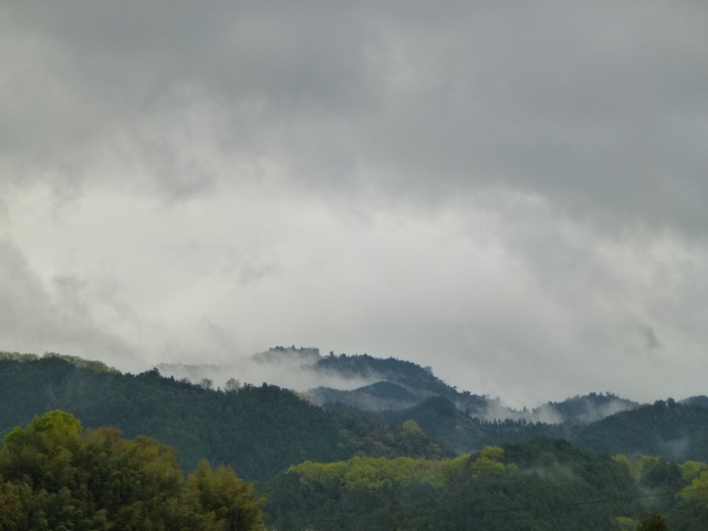 小雨に煙る高取山。新緑が綺麗だろうな~と一年前の定例会を思い出した。また、登らないとな。