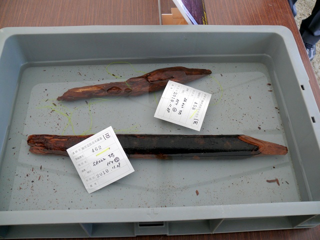 先月埋めたとしか思えなかった杭!SKって書いてあるので土廣から出土したんでしょうね。(^^ゞ