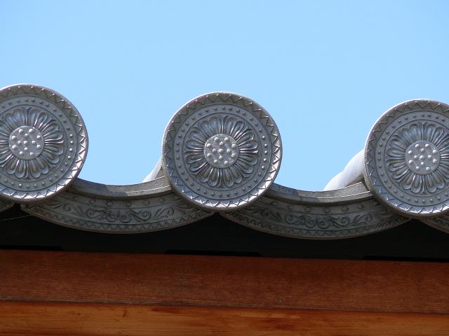 蓮台寺の屋根にこんな瓦が。これが何式の瓦当文様か分かれば、両槻会の優等生です♪