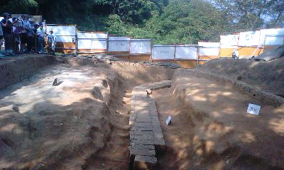 北側がメインの現場です。ぞろぞろと進んでいくと、八角形の角度が良く分かる敷石が綺麗に出ていました♪ 一見お寺などで見る犬走のようなきっちりと並べられた石敷きでした。ほー!綺麗やんか!が感想。(笑)