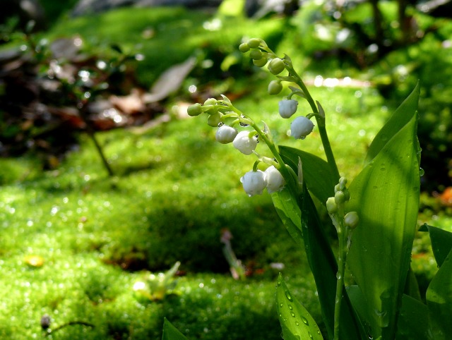 スズランが咲いた♪ 毎年この時期に花をつける。たぶんドイツスズランというのだと。