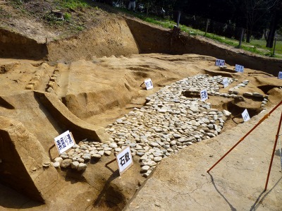 石敷が幅5.2mで、北に向かって約70m続いていた。周囲はバラス敷。