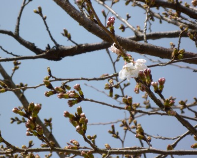 昨日は、初夏を思わせる天気。強い南風の中、桜も開花したようだ。