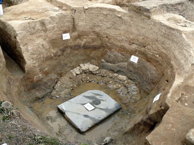 中宮寺塔心礎 (まっ平ら♪側面も綺麗に加工されていた。版築も綺麗でした♪)